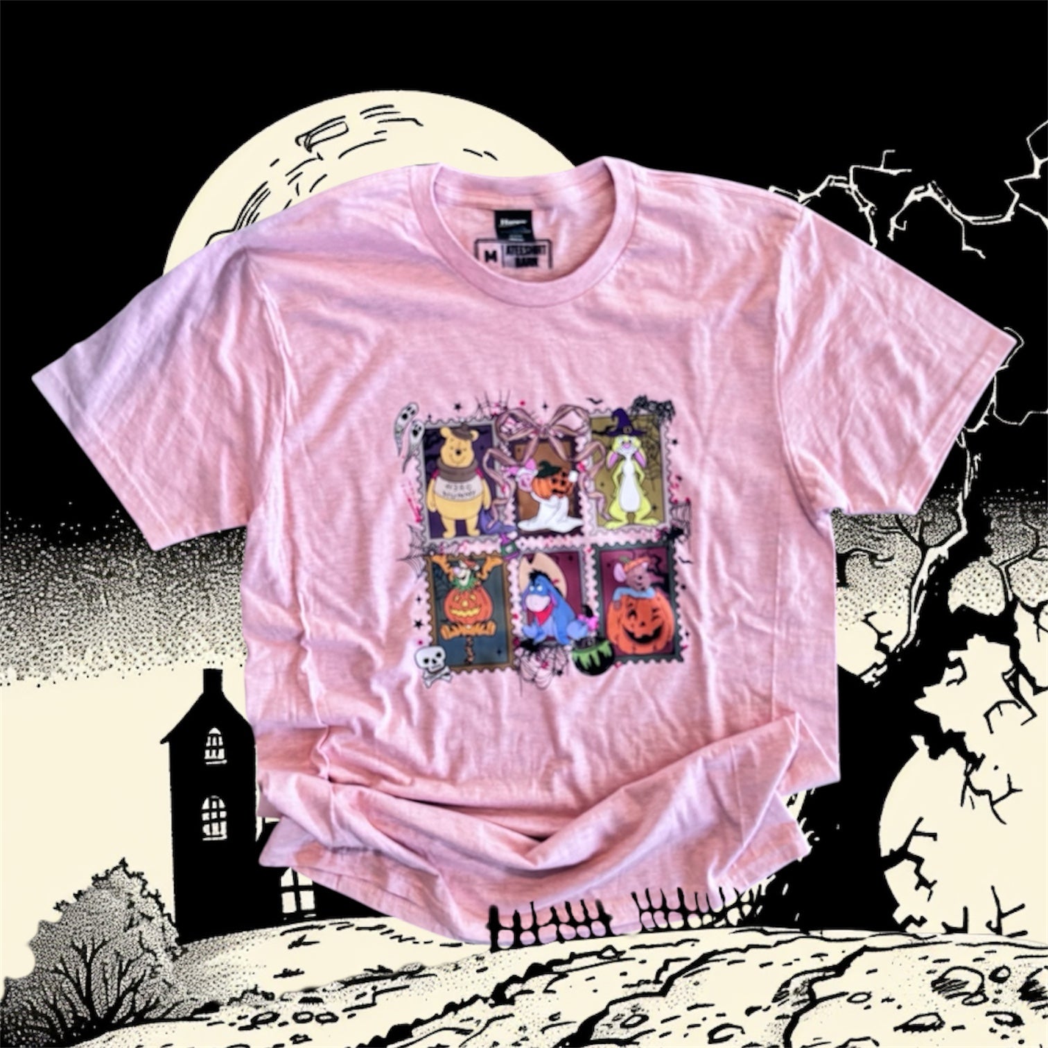 Halloween bear and all his friends tshirt"Get ready to howl with laughter in our Bear and Friends Halloween t-shirt! Made from soft, comfortable fabric, this shirt features a gang of playful characters that are perfect for all your spooky festivities. It's a must-have for any Halloween lover, so grab yours before they disappear into the night! (Limited quantities available, so don't hibernate on this deal!)"
