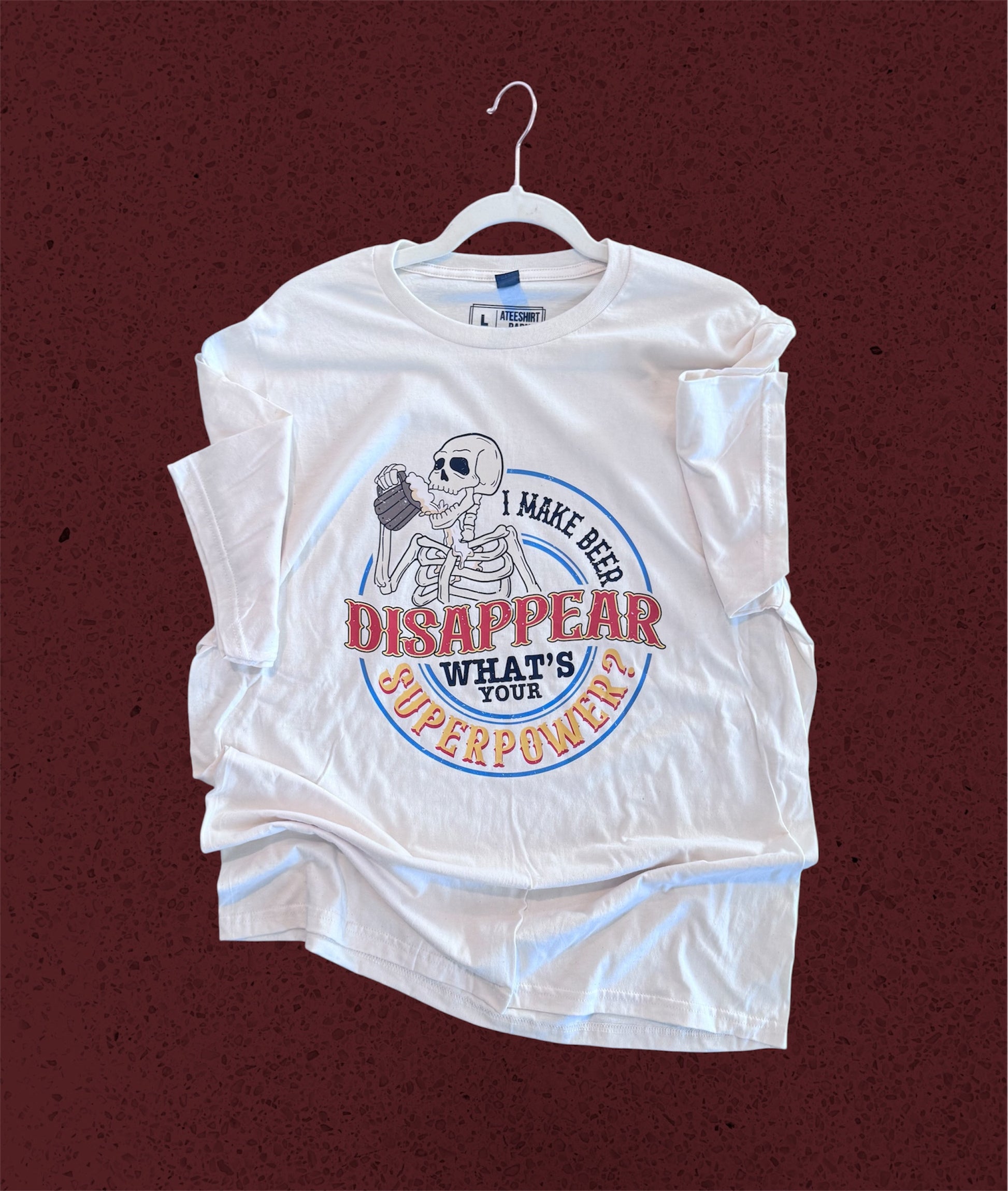 Unleash your inner party superhero with the Beer Superpower t-shirt. Featuring a skeleton design and the power of beer, this shirt is sure to bring laughs and amazement wherever you go. Perfect for any beer lover or a hilarious addition to any party outfit.