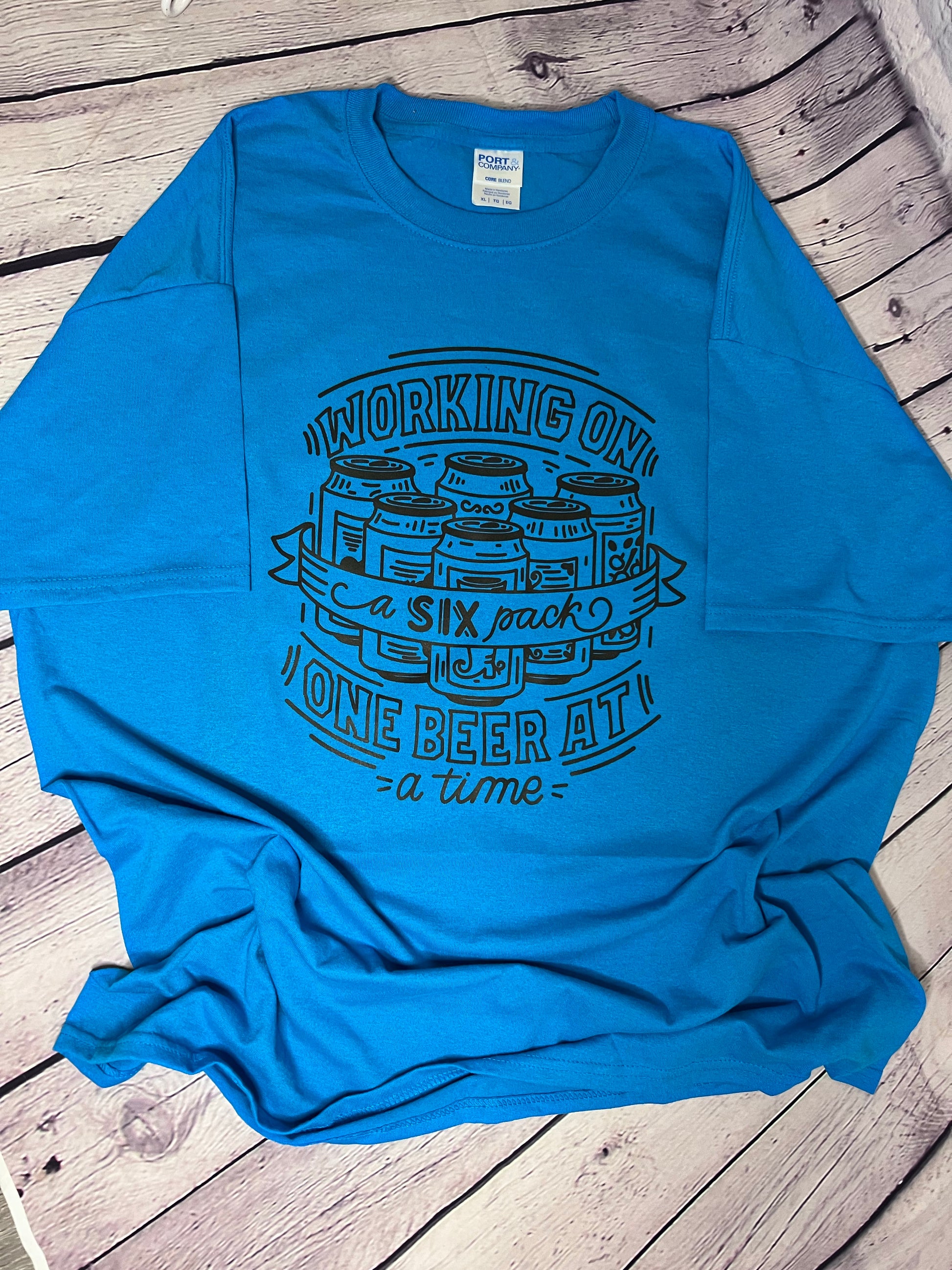 This funny t-shirt is perfect for beer-lovers with a sense of humor! Perfect for a night out with the crew, it'll help you show the world that you're 'Working on a 6 pack one 🍺at a time!' Cheers to good vibes, great beers and a conversation-starter t-shirt!