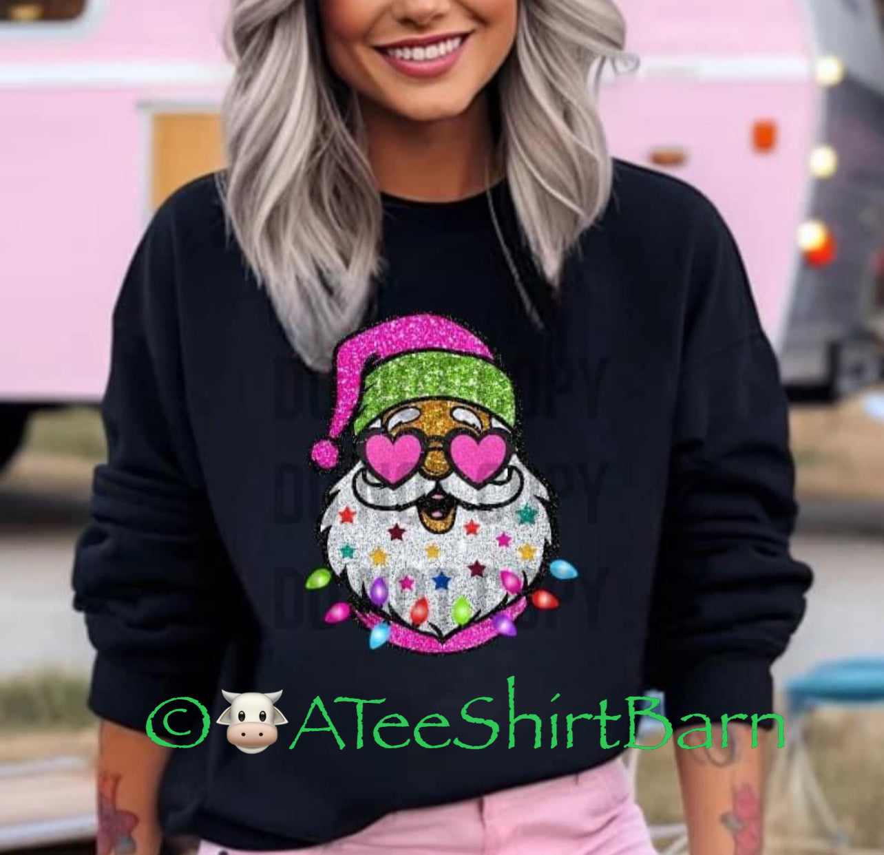 Grab yourself a Glitter Kool Santa and stand out from the crowd! This sparkly and festive top features a stylish glitter effect with a rockin' Santa design for the ultimate holiday look! Look cool and show off your festive spirit in this unique piece of holiday-wear.