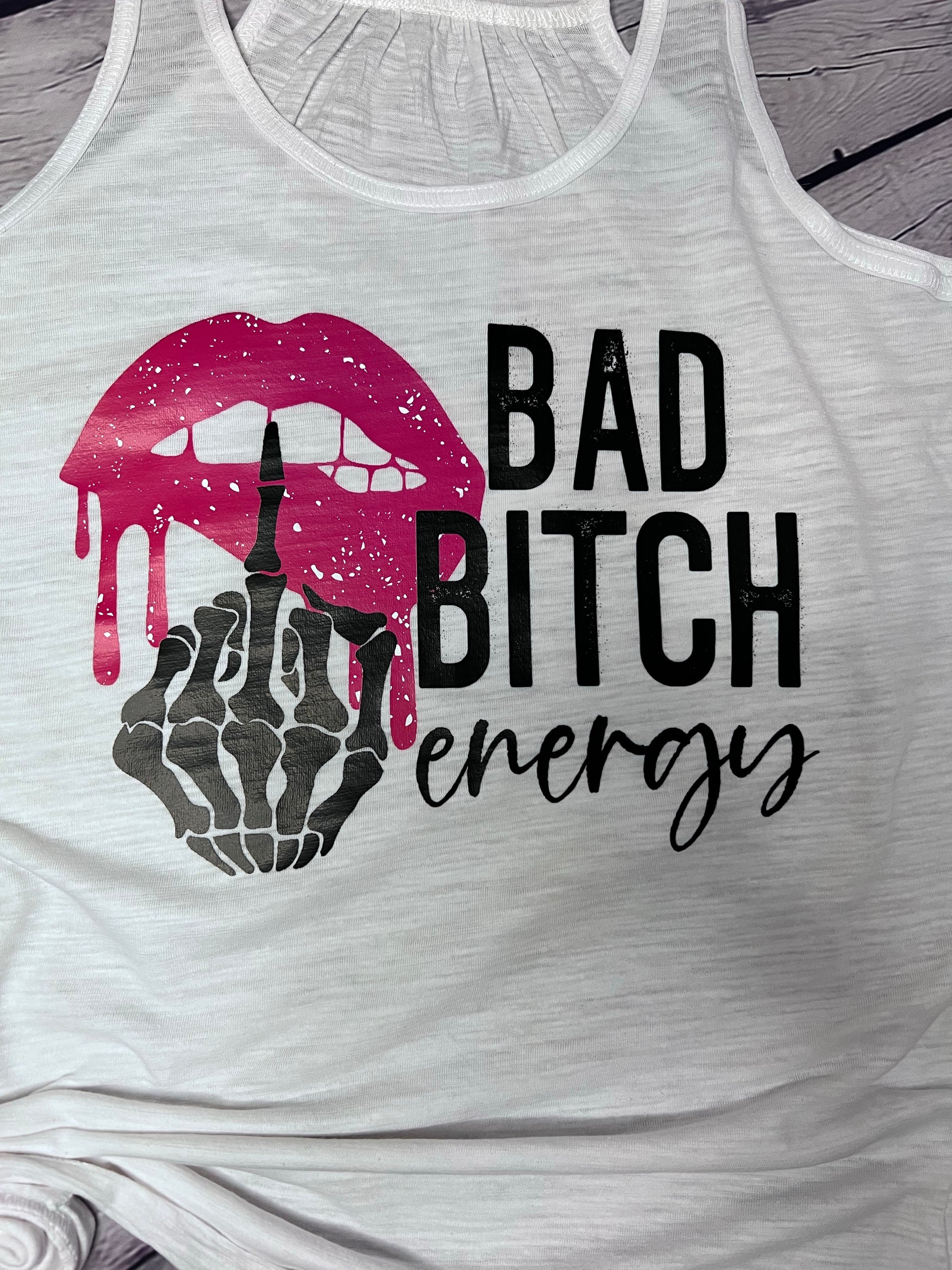 Treat yourself to this badass Bad Bitch Energy tank top and show the world who your inner baddie is! There's no better way to show off your sass and confidence than with this chic and stylish tank. Whether you're hitting up the gym or sipping mimosas with your crew, you'll stand out with this statement-making design. Unleash your inner baddie and get ready to slay!