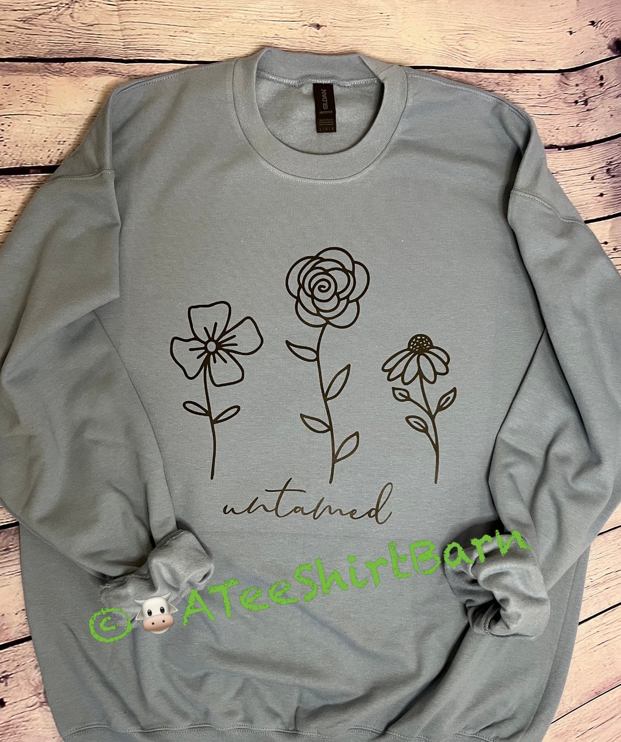 Tame the mundane in this one-of-a-kind untamed flower screen print crewneck! The unique design will let you stand out from the crowd, while the high-quality fabric ensures soft and comfy wearability. What more could you want? Express your wild side with this bold garment!