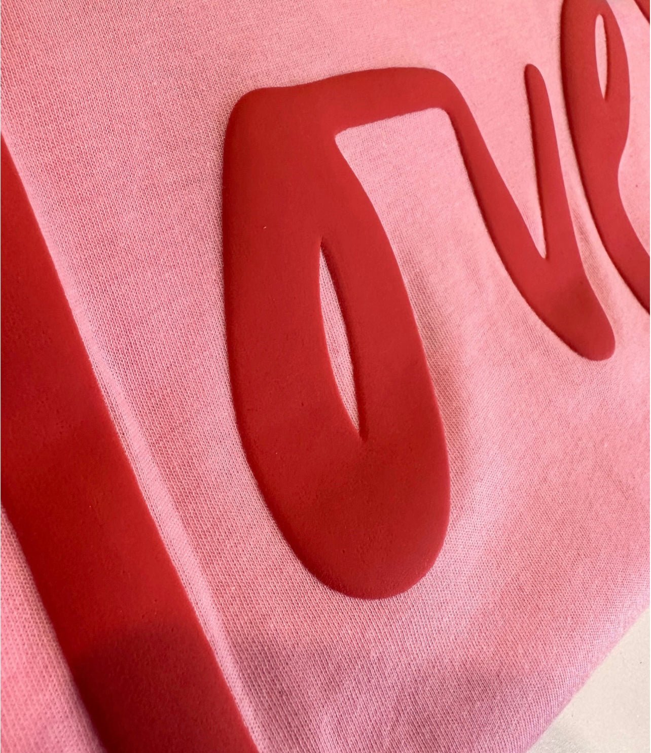 This *NEW* puff style screen print is the perfect way to show your love. LOVE has never looked better than with this creative and unique style. Now your devotion can be seen in a whole new way that is sure to amaze and delight! Go ahead and show your affection in an unexpected and fun way!